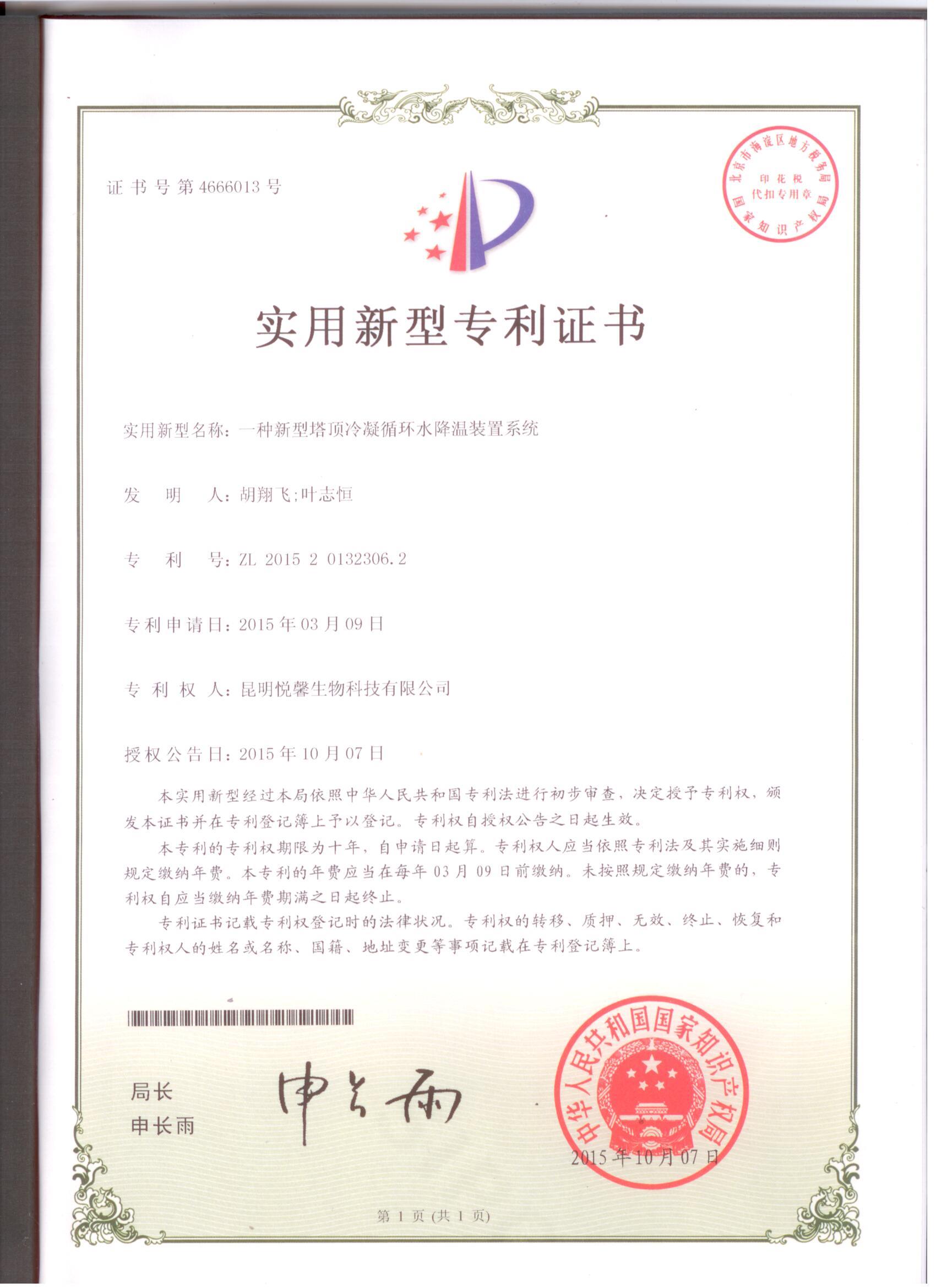 一种新型的塔顶冷凝循环水降温装置系统